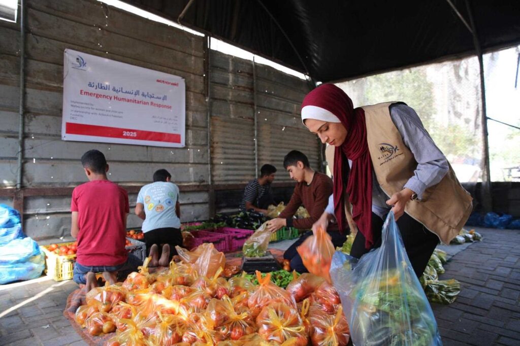 Distribuzione di pacchi alimentari nella
